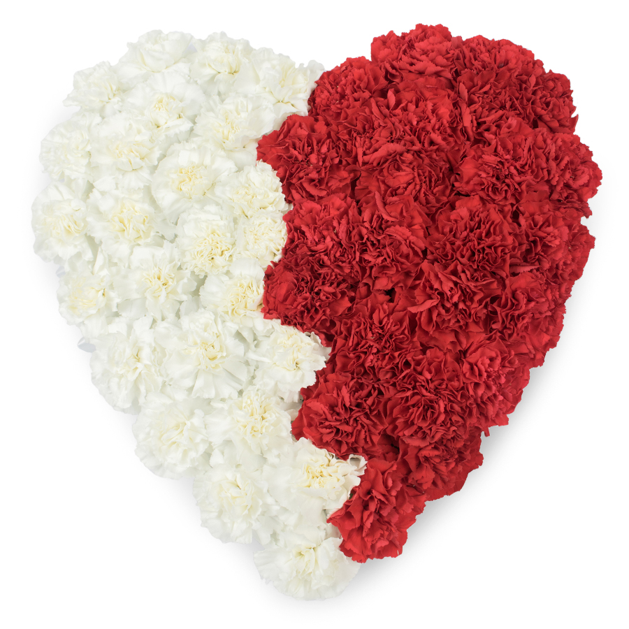 Express your deepest condolences with our Heart-Shaped Carnation Sympathy Bouquet, featuring a harmonious blend of white and red carnations. Each bloom is hand-selected to ensure utmost freshness and beauty.